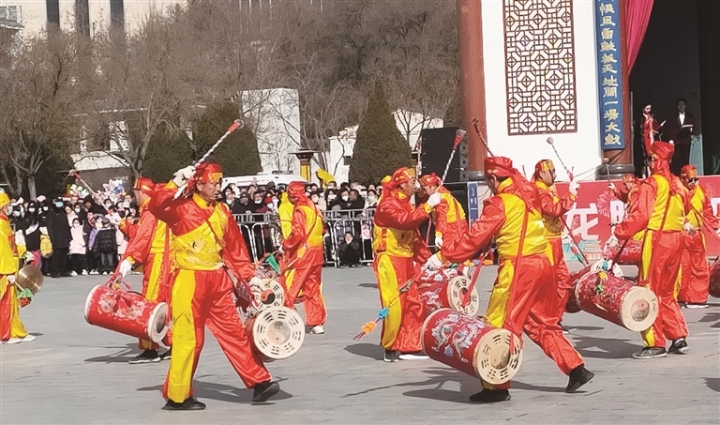 2月11日,來自會(huì)寧縣會(huì)師鎮(zhèn)的社火隊(duì)在紅軍會(huì)寧會(huì)師舊址景區(qū)表演,為廣大游客送歡樂。常琦彪 攝...